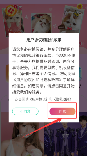 1、閱讀并確認服務協議,點擊進入圖片拍攝與編輯功能主界面。
